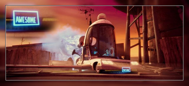 A few nights ago we were enjoying our latest Netflix rental and came to a scene in Cloudy with a Chance of Meatballs where the lead character, Flint Lockwood, builds a flying car to help save the town from his run away invention. Upon starting up the car and pulling it out of his laboratory, you see the license plate flash into neon-life… The rest speaks for itself…